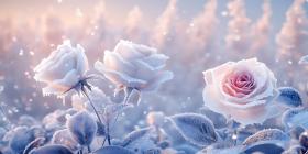 Winter Rose Garden Serene Frozen Blooms Pastel Colors Magical Fr