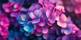 Vibrant Hydrangea Blooms Purple Pink and Blue Floral Macro Photo