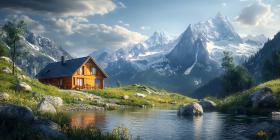 mountain cabin serene landscape alpine scenery wooden house snow capped mountains nature photography peaceful scene mountain view scenic vista idyllic setting rural landscape tranquil stream cabin in mountains mountain retreat landscape art digital painting calm waters reflection green hills rocky terrain cloudy sky mountain range natural beauty peaceful retreat escape to nature travel destination holiday getaway remote location wilderness untamed nature scenic background mountain home cozy cabin home in nature mountain life alpine village natural landscape countryside rural sceneSimilar Photos