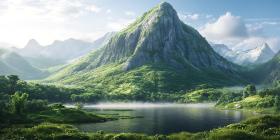 mountain lake mountain range panoramic view serene landscape lush greenery tranquil lake scenic view natural beauty peaceful scenery misty atmosphere pyramid mountain mountain peak landscape photography nature photography outdoor scene travel destination scenic background beautiful nature summer landscape green hills mountain vista calm water reflection clouds sky vegetation forest trees hills valley environment wilderness untouched nature scenic wallpaper desktop background nature backdrop digital art 3d render mountainous region alpine lakeSimilar Photos