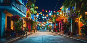 night scene street scene colorful buildings vibrant colors festive lights tropical plants balconies doorways nighttime urban scene cityscape street photography architecture buildings tropical exotic night city street lights colors buildings tropical plants window boxes sidewalks warm glow lively energy captivating charm hidden gem night photography streetlights urban photography travel photography colorful vibrant festive scenic beautiful charming magical enchanting atmospheric picturesque nightlifeSimilar Photos