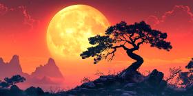 bonsai tree silhouette moon sunset landscape mountain digital art painting nature serenity peaceful evocative red sky night sky stars tranquility zen japanese artistic artwork illustration scenic view horizon sky tree plant mountain range twilight evening moonlight dark light shadow color art design background scene image graphicsSimilar Photos