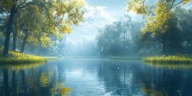 lake forest trees nature landscape scenic water reflection calm peaceful tranquil serene woodland woods summer sunlight leaves green blue sky clouds mist fog atmosphere environment ecosystem wildlife outdoors scenic view natural beauty beautiful peaceful scene relaxing meditation background wallpaper desktop screen digital art illustration artwork art paintingSimilar Photos