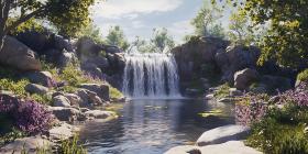 waterfall nature landscape scenic water rocks greenery forest trees plants sunlight sun leaves lush vibrant serene peaceful tranquil calm relaxing background photography scene view environment ecosystem wildlife natural beauty outdoor outdoors scenic view river stream rocks flora vegetation path water flow cascade digital art digital paintingSimilar Photos