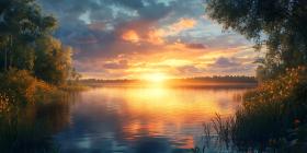 Stunning Sunset Landscape Picturesque River Golden Hour Nature P