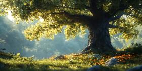 oak tree tree forest nature landscape sunlight leaves green golden light shadow grass wildflowers peaceful serene tranquil calm beautiful scenic photography panoramic majestic ancient trunk branches vibrant lush outdoor environment ecosystem natural beauty artwork art illustration digital art fine art summer spring autumn scene view backgroundSimilar Photos