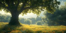 oak tree meadow sunlight nature landscape peaceful serene idyllic background design scenic tranquil summer spring field wildflowers green yellow forest woods trees leaves sunbeams light shadow countryside environment beautiful vibrant flora botanical vegetation illustration artwork artistic digital art digital painting graphics visual scene view panorama nature photography outdoorsSimilar Photos