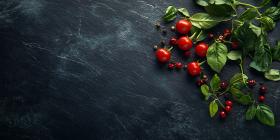 Vibrant Cherry Tomatoes and Fresh Herbs on Dark Background A Cul