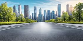 asphalt road city skyline modern city urban development skyscrapers architecture buildings green trees nature landscape roadway transportation travel cityscape urban metropolis progress development growth future horizon pathway street road driveway way route journey destination environment greenery park trees leaves sky sun day light blue green brown grey panorama perspectiveSimilar Photos