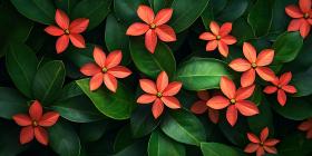 Vibrant Coral Flowers Lush Tropical Blooms in Rich Green Foliage