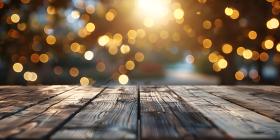 Wooden Table with bokeh effect background