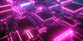 Abstract Circuit Board with Glowing Lights Background, Futuristic Technology Design with Illuminated Circuitry and Electric Sparks