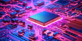 Abstract Circuit Board with Glowing Lights Background, Futuristic Technology Design with Illuminated Circuitry and Electric Sparks