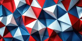 Abstract Red, Blue, and White Triangles Background, Bold Geometric Shapes of Triangles in Vibrant Red, Blue, and White Creating a Dynamic and Modern Design