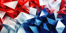 Abstract Red, Blue, and White Triangles Background, Bold Geometric Shapes of Triangles in Vibrant Red, Blue, and White Creating a Dynamic and Modern Design