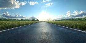 Asphalt long empty road background, a straight stretch of pavement fading into the horizon under an open sky.