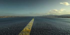 Asphalt long empty road background, a straight stretch of pavement fading into the horizon under an open sky.