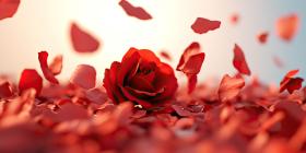 Beautiful vibrant red rose petals clustered and scattered background, a rich display of deep crimson petals creating a romantic and elegant ambiance.