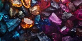 Broken gemstones rocky texture background, jagged shards of colorful gems scattered across a rough, textured surface, creating a striking and dynamic visual.