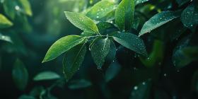 Close-up of a green leaf with water droplets background, the leaf's vibrant green color enhanced by the glistening droplets of water, capturing the natural beauty and freshness of the plant.