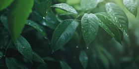 Close-up of a green leaf with water droplets background, the leaf's vibrant green color enhanced by the glistening droplets of water, capturing the natural beauty and freshness of the plant.