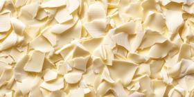 Closeup Texture of Shredded White Chocolate Flakes Dessert Background, Delicate Layers of Shredded White Chocolate Creating a Sweet and Creamy Texture