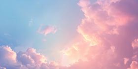 Clouds in Sky with Faint Rainbow Background, Soft Sky Clouds with Subtle Rainbow Arch