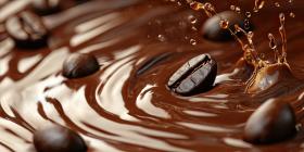 Coffee Beans Swirl in Creamy Frothy Liquid Background, Rich Espresso Mixing with Creamy Foam, Creating a Smooth and Inviting Coffee Texture