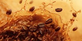 Coffee Beans Swirl in Creamy Frothy Liquid Background, Rich Espresso Mixing with Creamy Foam, Creating a Smooth and Inviting Coffee Texture