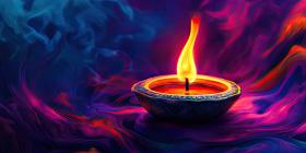 Colorful Happy Diwali Diya Oil Lamp with Flame Background, Vibrant Festive Design Featuring Lit Diya and Radiant Colors
