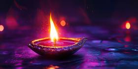 Colorful Happy Diwali Diya Oil Lamp with Flame Background, Vibrant Festive Design Featuring Lit Diya and Radiant Colors