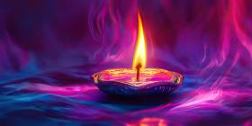 Colorful Happy Diwali Diya Oil Lamp with Flame Background, Vibrant Festive Design Featuring Lit Diya and Radiant Colors