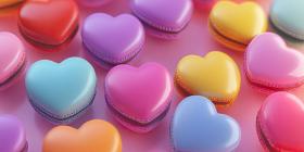 Colorful multiple heart-shaped macarons background, a delightful assortment of pastel-colored heart-shaped macarons arranged in a playful pattern, creating a sweet and charming atmosphere with soft, delicate textures.