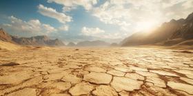 Cracked Desert Ground Background, Dry and Parched Earth with Deep Cracks, Depicting a Harsh Desert Landscape