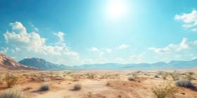 Desert Landscape Under Bright Blue Sky Background, Vast Sandy Desert with a Clear, Vibrant Blue Sky Above
