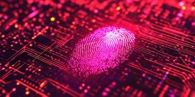 Glowing Fingerprint on Circuit Board Background, Illuminated Fingerprint Integrated with High-Tech Circuitry in a Futuristic Design