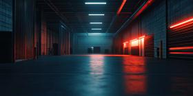 Industrial Warehouse Interior with Bright Lighting Background, Spacious Warehouse with High Ceilings and Illuminated by Bright Lights