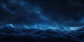 Nightscape with Smooth Undulating Blue Waves Under Starry Sky Background, Serene Ocean Waves Gently Rolling Beneath a Beautiful Starry Night Sky