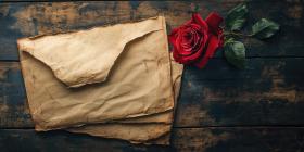Paper with a Red Rose for Love Letter Background, Elegant White Paper with a Softly Placed Red Rose, Creating a Romantic and Timeless Setting