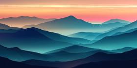 Peaceful mountain landscape with layers background, soft, rolling mountain ranges in varying shades of blue and green, fading into the distance, with a tranquil sky above, creating a serene and harmonious natural scene.