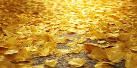 Path lined with fallen yellow leaves background, a serene walkway covered with vibrant yellow leaves, creating a peaceful autumn scene with trees lining the path, casting soft shadows in the gentle light.