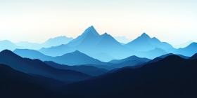 Peaceful mountain landscape with layers background, soft, rolling mountain ranges in varying shades of blue and green, fading into the distance, with a tranquil sky above, creating a serene and harmonious natural scene.