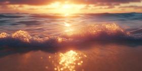 Sand and Waves Under Radiant Sunrise at Beach Background, Stunning Beach Scene with Sunrise Over Sand and Waves