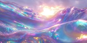 Shining holographic floating flowing waves background, dynamic, iridescent waves of light gently undulating and floating in a fluid motion, with a holographic sheen that shifts colors, creating a mesmerizing and futuristic atmosphere.
