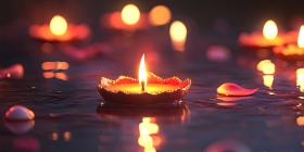 Small Happy Diwali Candles Glow Brightly Against Background, Softly Flickering Diyas with Warm Light Creating a Festive Atmosphere