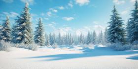 Snow-covered pine trees background, tall pine trees blanketed with fresh snow, creating a peaceful and serene winter scene, with soft, white snowflakes gently resting on the branches, evoking the beauty and stillness of a snowy forest.