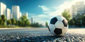 Soccer Football on Street Daylight Urban City Background, A Lively City Street with a Soccer Ball on the Ground Under Bright Daylight