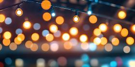Spotlights Illuminate Colorful Backdrop of Blurred Lights Background, Vibrant Lights Blurring into a Dreamy Effect with Focused Spotlights Creating a Dramatic Scene