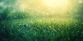 Sprinkler head watering a lush green lawn background, droplets of water gently spraying across the vibrant grass, creating a refreshing and peaceful scene under a bright sky.