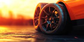 Stack of Racing Sports Car Tires with Vibrant Background, Bold Racing Tires Piled Up Against a Colorful, Energetic Backdrop